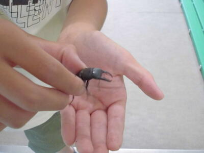 捕まえてみると、何と、立派なハサミをもったクワガタでした。