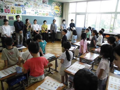 今日は、1年生と4年生の教室で、行ってもらいました。