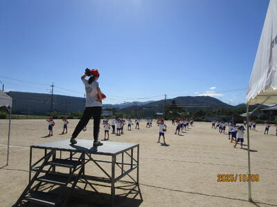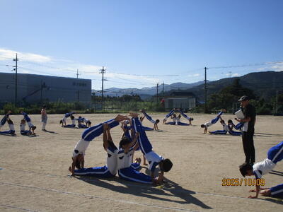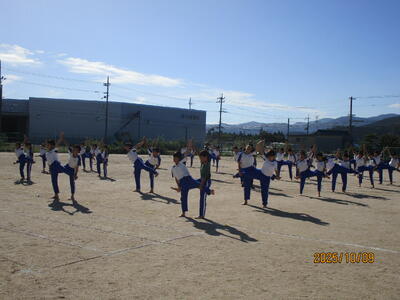 今日は、午前中に行われました、高学年と低学年が団体演技の練習の風景を紹介します。