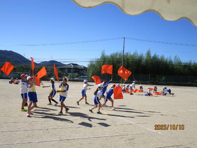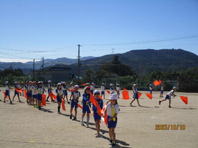 子どもたちは、どの子も胸を張って旗を振っていて、旗の扱いにも、もうすっかりと慣れた様子です。