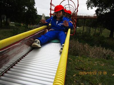 こちらでも、ロープジャングルジムやスライダーなどの巨大遊具で、思いっきり遊びました。