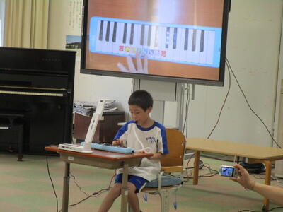 ピアノ演奏です。なじみのある「ドラえもん」の曲を演奏できました。