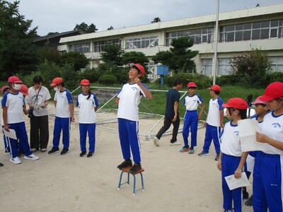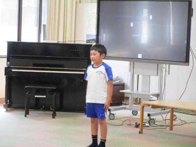 中休みを利用して、高学年の代表の子たちによる、開会式・閉会式の練習を進めました。