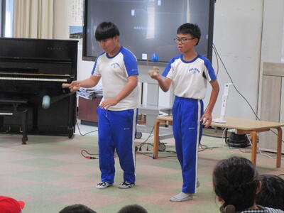 そして、けん玉です。難しい技でも、スイスイとドンドン決めていきます。決まるたびに大きな歓声が!