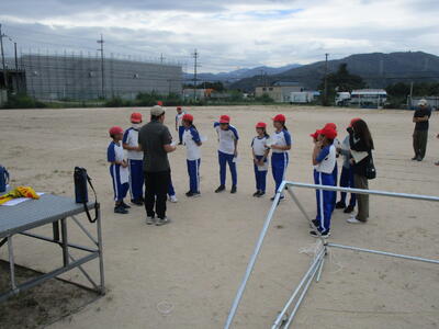 今日は、初めての運動場練習ということで、広い運動場での、自分の立ち位置や隊形移動の動きなど、一つひとつ確認をしていくことが、めあてです。