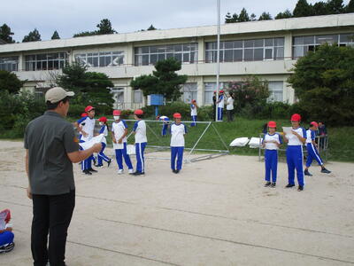 授業では、体育科の授業時間をつかって、リレーや団体演技の練習を積み重ねています。