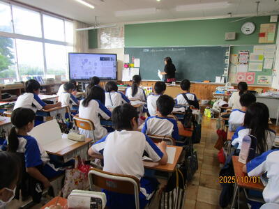 子どもたちも、教科書の図を確認したり、この時間の「学習のめあて」をノートに書き写したりして、まじめに学習を進めています。