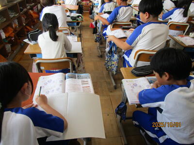 運動会では、応援合戦のリーダーや開閉会式など、競技以外でも6年生が活躍する場が多いので、その準備や練習も大変だろうと思いますが、こうして日々の学習もがんばっている姿に感心しました。