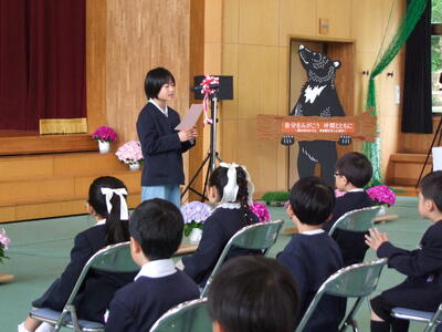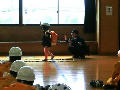 横断歩道の渡り方のお話の中では、1年生の代表の子に実際の渡り方を実演してもらう場面がありました。